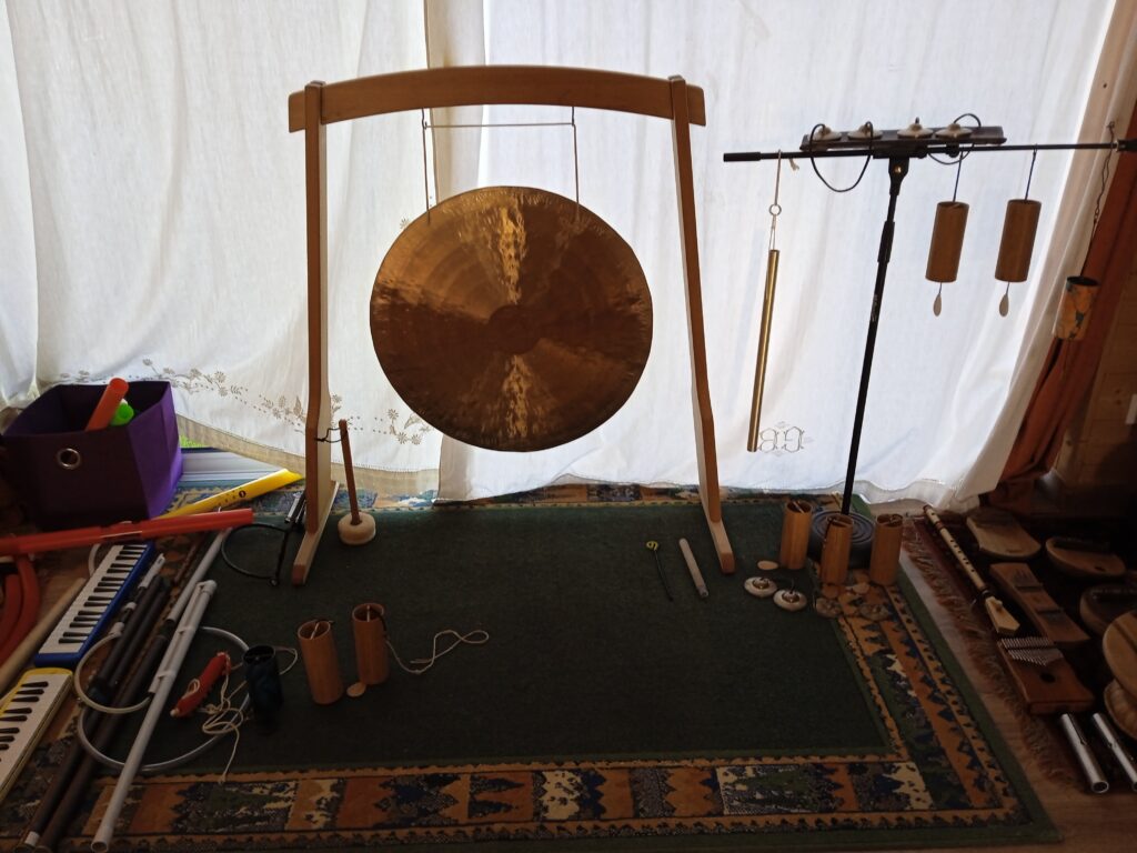 Le voyage sonore peut vous porter dans des contrées lointaines, en Afrique, en Asie, auprès des indiens d’Amérique, au bord d’une rivière ou de la mer, dans un pré avec les oiseaux, les grenouilles, et aussi par delà les nuages, dans le cosmos, etc… alors prêt à voyager sur votre tapis !